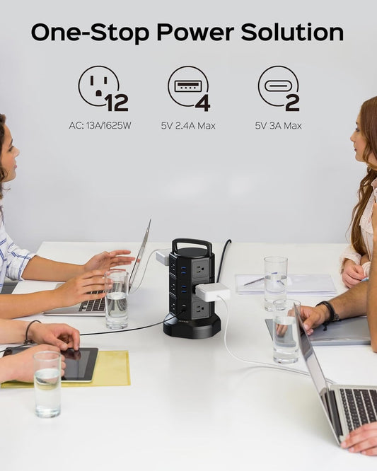 Power Strip Tower Surge Protector, 1625W 13A Outlet Surge Electric Tower, 12 Outlets 6 USB Ports...